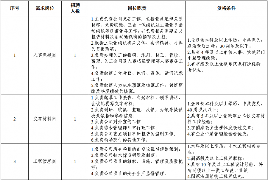 本次公開招聘3個(gè)崗位,具體招聘崗位及要求詳見附表。